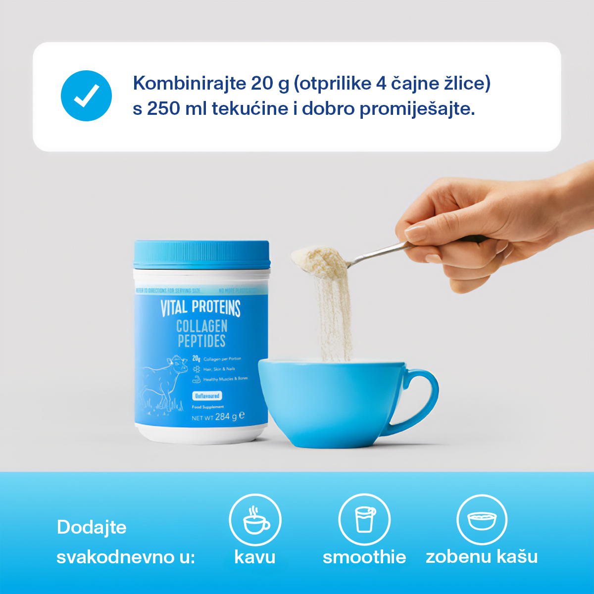 Jednostavan, čist i iznimno učinkovit — Goveđi Vital Proteins kolagen osmišljen je za sve koji žele kvalitetnu podršku iznutra.