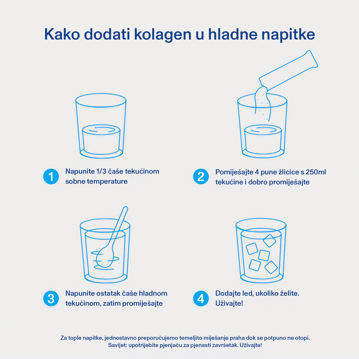 Kolagen peptidi doprinose elastičnosti i hidrataciji kože, normalnoj strukturi kose i noktiju te podržavaju funkciju kostiju. Zbog svoje odlične bioraspoloživosti tijelo ga brzo apsorbira i učinkovito koristi, što ga čini idealnim izborom za svakodnevnu rutinu ljepote i vitalnosti.